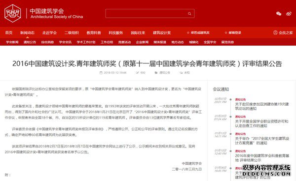 3月12日,中国建筑学会网站公布了2016中国建筑设计奖·青年建筑师奖(原第十一届中国建筑学会青年建筑师奖)的获奖名单,我院陈子坚、李晋(定聘)、何小欣、盘育丹四位建筑师名列其中,可喜可贺。
