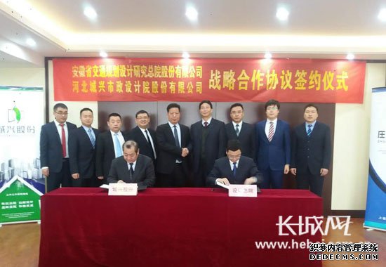 安徽省交通规划设计研究总院股份有限公司总经理徐宏光一行5人组成的专家考察团,经过两天的详细考察,于3月22日上午,在雄安新区容城与河北城兴市政设计院股份有限公司签署了战略合作协议,双方共同携手服务雄安新区的规划建设。